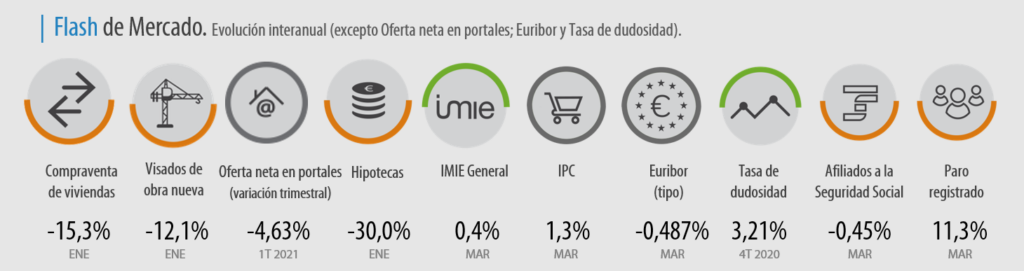 Este mes, la estadística IMIE General refleja cuál es la situación del mercado residencial en España al cumplirse el primer aniversario de la declaración del Estado de Alarma en España por la pandemia. «Los datos provisionales del índice general apuntan a una recuperación de valores sostenida en los primeros meses de 2021 y tendencia generalizada hacia la estabilización tras concluir 2020 con caídas moderadas», apunta Andrea de la Hoz.