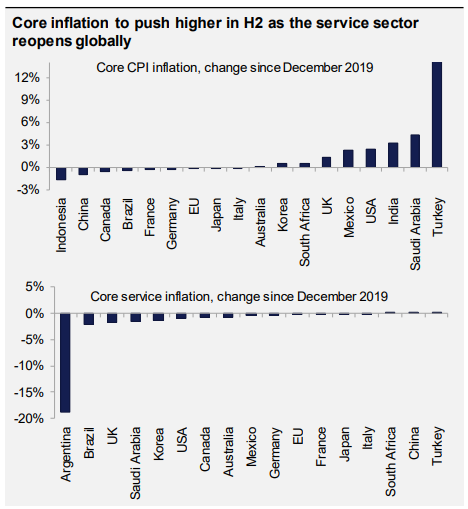 Dicho esto, EE.UU. se distingue en cierto modo de otras economías de mercado. El aumento del IPC subyacente de EE.UU. desde finales de 2019 fue mayor que el de todas las economías emergentes, salvo algunas idiosincrásicas. Las limitaciones de la oferta en el mercado mundial de semiconductores, que han afectado a la producción de coches nuevos, han provocado un gran aumento de los precios de los coches usados en abril. Y las cadenas de comida rápida, al parecer, están teniendo que subir los salarios para atraer a los trabajadores y evitar que reciban generosos pagos del seguro de desempleo. En última instancia, pensamos que, con la retirada de los seguros de desempleo, la gran capacidad de carga del mercado laboral se reafirmará. Pero la distribución de los riesgos de inflación está más sesgada en EE.UU., dada la magnitud del estímulo fiscal.