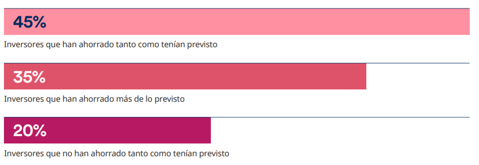 El 45% de los inversores españoles afirmó que a lo largo de 2020 cumplió con sus objetivos de ahorro, mientras que el 35% consiguió ahorrar más de lo previsto al reducir el gasto en aspectos no esenciales, como comer fuera, viajes y ocio.