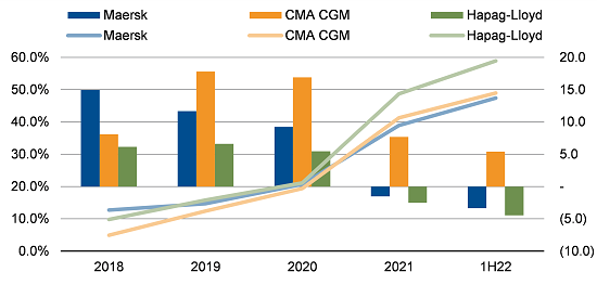 Fuente: CMA CGM, Hapag-Lloyd, Maersk, Scope Ratings.