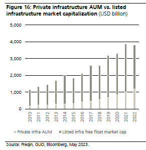 Creemos que esta tendencia continuará, ya que muchas inversiones en infraestructuras con una larga vida útil encuentran un encaje más natural bajo la propiedad de fondos privados de infraestructuras que tienen horizontes de inversión largos.