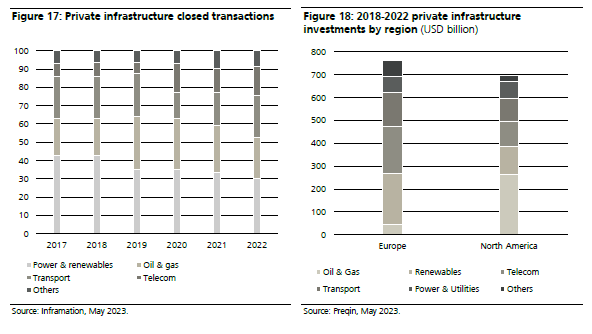 Algunas políticas recientes, como la Ley de Reducción de la Inflación de EE.UU., la Ley Bipartidista de Infraestructuras de EE.UU. y el Green Deal de la UE, han ampliado significativamente el universo invertible para los inversores en infraestructuras.