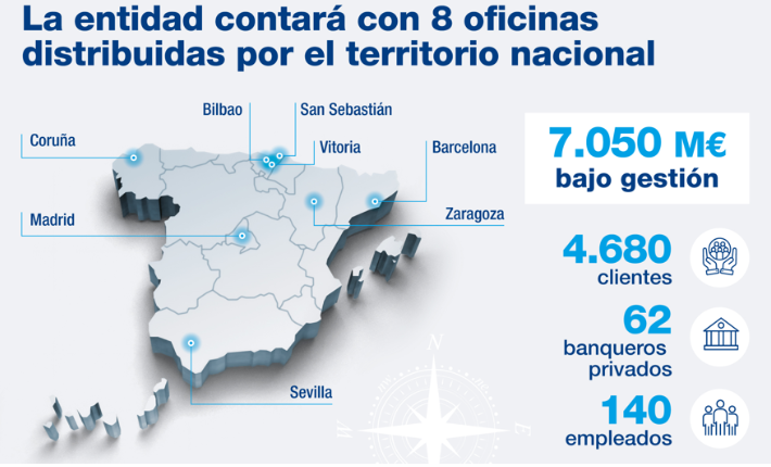Estará presente en todo el territorio nacional a través de ocho oficinas situadas en Madrid, Barcelona, Bilbao, San Sebastián, Vitoria, Sevilla, La Coruña y Zaragoza. Además, la nueva sociedad contará con presencia internacional, a través de una filial en Suiza.
