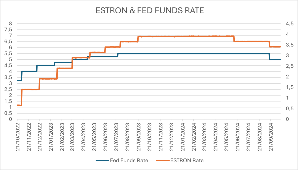 En Europa se esperan 5 o 6 bajadas de tipos, de 0,25% cada una, de forma que la tasa para 2025 cierre en el 2% o el 1,75% dependiendo de si terminan siendo esas 5 o 6 bajadas de tipos esperadas.
