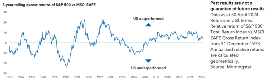 Aunque Lovelace admite que lo normal es que a largo plazo las distintas regiones tomen la delantera en términos de liderazgo de mercado, señala que es demasiado pronto para descartar la renta variable estadounidense.